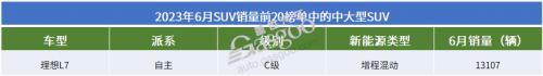 此外值得一提的是,6月SUV销量前20榜单上出现了一个新面孔——理想L7,这也是近期唯一一款进入到SUV销量前20榜单的新势力车型。