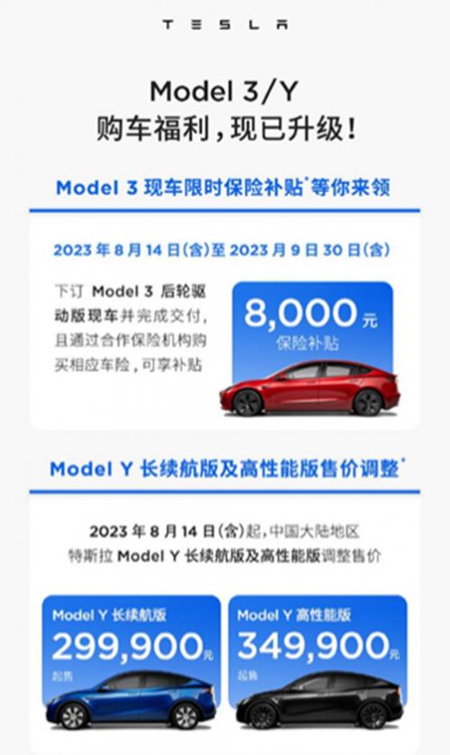 汽车信息网讯近日,特斯拉在国内接连降价。先是国产Model 3和Model Y再次推出降价措施,其中,Model 3提供8000元的限时保险补贴,Model Y两款四驱版车型降价1.4万元,其中ModelY长续航版起售价从31.39万元调整为29.99万元,Model Y高性能版从36.39万元调整为34.99万元。