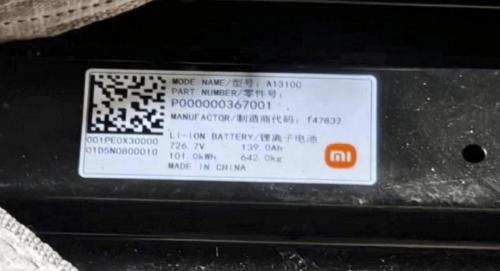此前,小米汽车新车路试谍照已经曝光,虽然车身覆盖了厚厚的伪装,但是还是可以看到汽车头顶搭载了激光雷达设备。车辆参数方面,网传的一份铭牌中有显示,新车搭载101kWh电池包,重量为642 kg。额定电压为726.7V,额定容量为139 Ah。