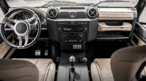 另外,车厢还配上了防翻滚碰撞架和外侧三英寸钢制防滚杆应有助于将受伤风险降至最低。车内采用皮质包裹,复古式方向盘和中控台。