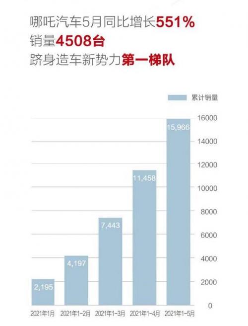 作为试图入围的“底气”,其5月销量则达到再创历史新高的4,508辆,同比增长为551%。据官方数据显示,哪吒1-5月累计销量达到15,966辆。至于背后的原因,还是与哪吒V自去年11月份上市以来大获成功。据悉,该车型目前已完成交付1.4万辆,未交付订单超过6,000辆,今年销量预计将超过3万辆。