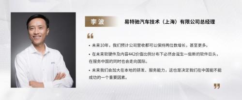“未来10年,我们预计公司营收都可以保持两位数增长,甚至更多。”易特驰汽车技术(上海)有限公司总经理李波先生日前在盖世汽车开展的C Talk高端系列访谈中表示。