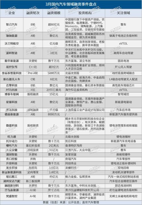 在如此变幻莫测的又竞争异常激烈的当下,整个汽车产业链将会如何平衡好技术、成本与利润的天平,而这些动作又会如何反映到一级市场,值得关注。总体上,相较前两个月,走过常规淡季的3月,资本市场出现了明显的回温。