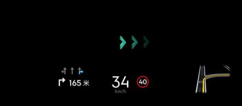 首先,AR-HUD界面新增地图投屏功能,支持小地图、路口放大图、红绿灯倒计时状态显示;