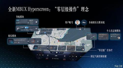 我们来聊聊它的人机交互设计,这台EQS的车机系统是靠8核CPU、24GB内存、46.6GB/s带宽等强大“脑力”来支撑的,强调了“零层级”交互理念。常用的功能无需滚屏、无需翻页便可以实现操作,当然你也可以自定义你的大屏幕。