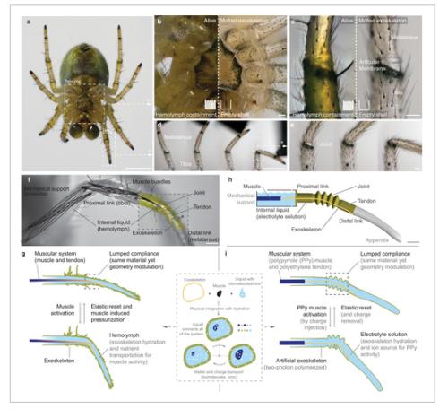 在生物体中,器官、血管和肌肉骨骼系统通过液体整体结合在一起。例如,作为蜘蛛体内的一种类似血液的液体,血淋巴能够激活肌肉和外骨骼的灵活性。受到栖息在爱沙尼亚的黄瓜蜘蛛的启发,研究人员创造出一种复杂的软体机器人。在这种机器人中,软的和硬的部分可以一起工作,并通过液体连接起来。