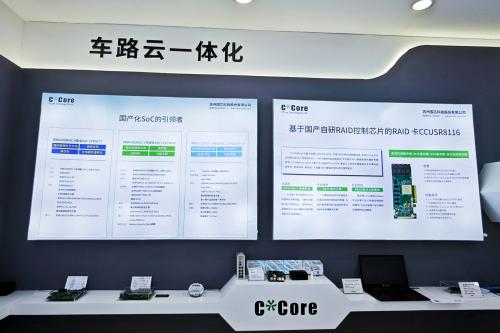 在此背景下,此次亮相的高可靠RAID存储控制芯片CCRD3316亦是本次国芯科技展台中亮点之一。其采用国芯32位PowerPC架构CPU核C8000和32位M*Core指令架构CPU核C0组成的异构多核处理器,具备DDR3、PCIe2.0、SATA2.0等接口,支持连接机械硬盘或者SSD固态存储盘,实现数据的高可靠、高效率存储及传输。