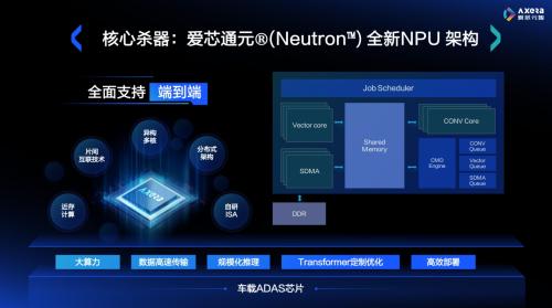 总之,爱芯第五代NPU,能够支持端到端模型在我们的大算力芯片上的规模化推理。数据高速传输,Transformer极致专项优化和高效部署。