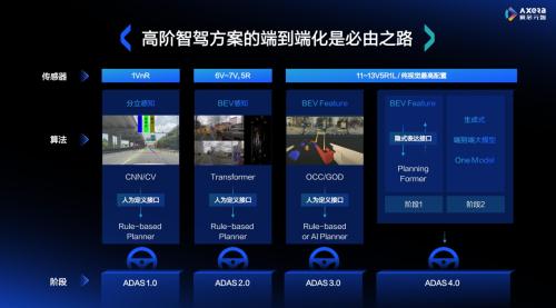 他认为,端到端技术路线的性能表现,远超rule-based的规控效果,并且给出非常明确的判断:高阶智驾方案的端到端化是必由之路。演讲中他还分析了特斯拉FSD能力提升背后是端到端技术的应用,并且提出了ADAS1.0-ADAS4.0的发展阶段论,目前行业正处在向4.0阶段突破的关键时刻。