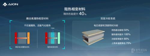 除了提升电池本征安全性,埃安还与中国航天合作,开发了拥有隔热和相变吸热双重功能的阻热相变材料。这种相变材料的相变潜热相对常规材料提升了10倍,能在温度维持不变的基础上吸收大量的热量,配合网状纳米隔热材料,整体的隔热性能大幅度提升40%。另一方面,弹匣电池2.0采用了双层冷却系统,对电芯顶部和底部同时进行冷却,整体冷却效率可提升80%,同时还降低了75%的上壳体温度,进一步保障了电池包上方乘员的安全。