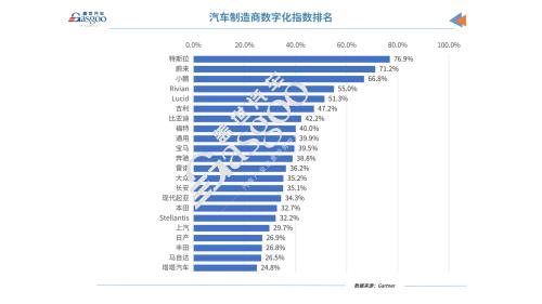 日前,咨询公司高德纳(Gartner)发布了年度“汽车制造商数字化指数(Gartner Digital manufacturers Index)”,对22家汽车制造商进行了九个维度的评估,利用了13,919个不同的数据点,并得出结论:若想赶上造车新势力的数字化竞争力,传统汽车制造商需要弥补巨大的鸿沟。