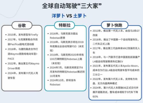 伴随科技巨头在自动驾驶领域布局不断提速,萝卜快跑、谷歌、特斯拉如今正形成全球自动驾驶“三大家”格局。全球自动驾驶真正的竞争,才刚刚开始。