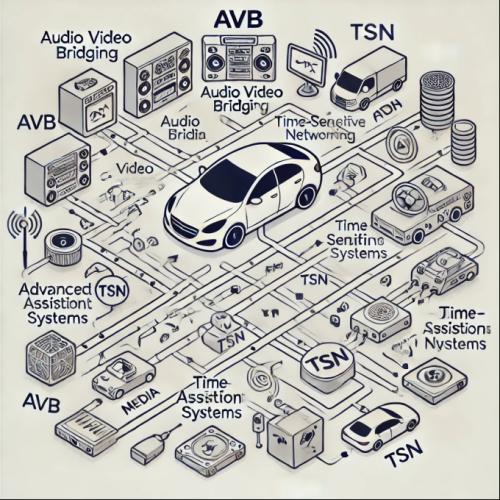 AVB(音视频桥接)是专为高带宽音视频传输设计的协议,能够确保数据的同步性和低延迟。在车载娱乐系统和多媒体通信中,AVB能够有效解决多通道音频传输和高清视频播放的流畅性问题。
