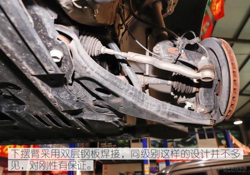 相比同级别其他车型,双层钢板冲压焊接的下摆臂在同级别车型里并不多见,与单层冲压的下摆臂相比,能应付更高强度的路面冲击。