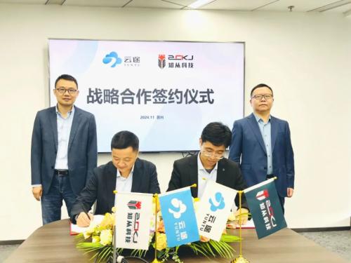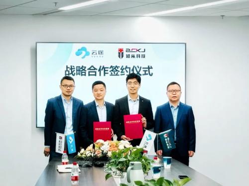 △云途半导体CEO(左一)与知从科技CEO陈荣波(右一)共同见证签约仪式