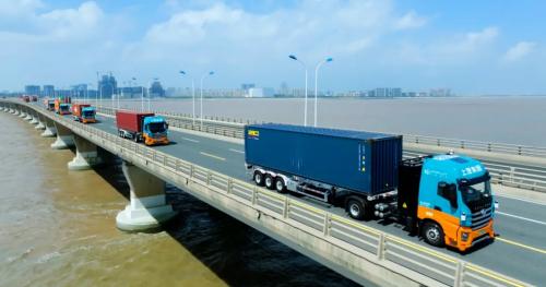 搭载相同智能驾驶系统的智能重卡在东海大桥开展自动驾驶运营