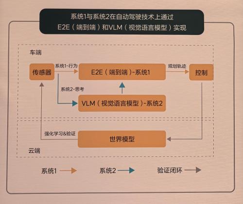 以理想端到端与VLM相结合的双系统架构方案为例,其基于丹尼尔*卡尼曼(Daniel Kahneman)在《思考,快与慢》中提出的人类两套思维系统理论,将端到端系统(相当于系统1)与VLM视觉语言模型(相当于系统2)融合应用于自动驾驶技术方案中,旨在赋予车端模型更高的性能上限和发展潜力。