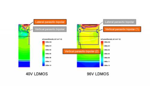 东芝和日本半导体对LDMOS中的HBM容差进行了评估,发现即使背栅比增加,在80V以上时容差也没有增加。他们发现这是因为在2D TCAD模拟中,垂直寄生双极效应与横向寄生双极效应一起出现,使设计人员在设置HBM和背栅比参数时具有更大的自由度。