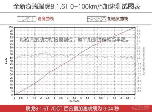 在动力参数上,瑞虎8可以说是不输多个阵营的车型,但只有门面数据,不足以说明性能。接下来我们再看看实测数据,从直接的加速性能山过来瑞虎8的1.6T发动机性能是否真的强大。(以下均为太平洋汽车网实测数据)