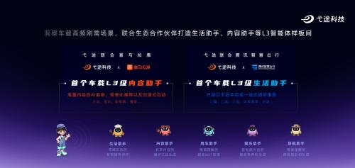 第三是服务层,作为车载智能交互领域的突破性创新,弋途心界AI-L3智能体通过独创的多智能体协作架构,将生活助手、用车助手等模块深度融合,实现导航规划、场景化播客、智能点餐等跨场景服务的无缝串联,真正达成"需求感知-服务触发-闭环执行"的完整链条。此次发布会上,弋途科技联合喜马拉雅在行业内率先推出车载L3级内容助手,依托海量内容智能编排与情境感知推荐算法,打造出具备沉浸式互动能力的AI播客;同时携手腾讯智慧出行打造L3级生活助手,通过车载Mind去调用腾讯小程序海量服务生态,自动化完成买票,订餐等各种生活服务的100%闭环。值得关注的是,本次生态联合发布标志着车载智能体从单一功能向生态协作的跨越式进化,弋途科技联合了行业头部生态伙伴,正在开拓全新的车载智能体生态圈。