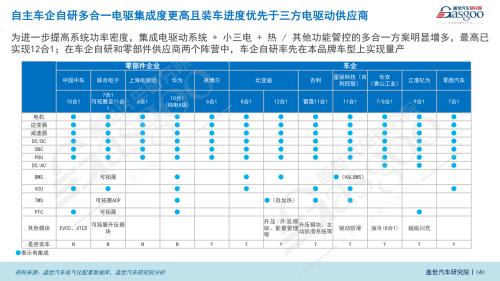 对比右侧车企阵营的技术布局,自主品牌的集成化进程呈现两大特征: