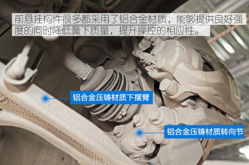 MKZ采用了非常主流的前麦弗逊后多连杆结构,是目前前置发动机布局当中,能兼顾空间和品质的结构形式。MKZ的前悬挂在铝合金的使用率上非常高,包括下摆臂和转向节,另外前悬挂同样配备了横向稳定杆。