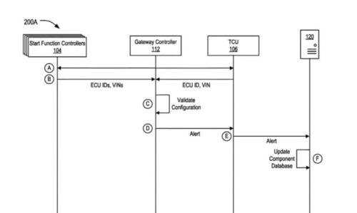 图片来源:USPTO近年来,福特发布了多项专利,概述了未来车辆可能能够检测某些物品被盗的方法——带来了诸如主动车轮防盗系统、车轮盗窃检测系统和零件盗窃检测系统等构想。如今,这项新发布的专利则将这一趋势推向了略微不同的方向,提出了一种替代TCU(远程信息处理控制单元)的告密模式。这项新专利的唯一目的是防止窃贼和黑客以非常特殊的方式访问联网汽车。如今,那些不法之徒一直在车辆上安装TCU移除防护罩,这可能会给车主带来各种各样的问题。因此,福特提出了这套系统,当检测到控制器不匹配时,它会向车主发出警报。这些警报甚至可以通过云端的移动设备(例如智能手机)发送,帮助车主向相关部门报警,甚至可能当场抓获窃贼——这使得该系统在未来的福特汽车上应用似乎可行。本发明公开了一种管理不匹配控制器警报的方法。该方法包括:将从多个车辆接收到的不匹配控制器警报存储到具有一个或多个硬件计算设备的云系统的组件数据库中,每个不匹配控制器警报指示安装了该不匹配控制器的当前车辆的标识符,以及当前车辆的位置。该方法还包括:通过云系统对不匹配控制器警报进行聚类,以按位置关联不匹配控制器警报。此外,该方法还包括:通过云系统指示不匹配控制器警报的聚类位置。