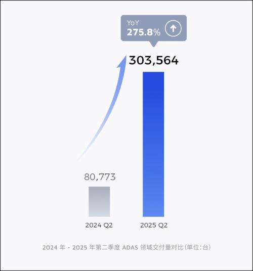 第二季度,禾赛激光雷达总交付量为352,095台,同比增长306.9%。其中,ADAS交付量为303,564台,同比增长275.8%。上半年,禾赛激光雷达总交付量为547,913台,同比增长276.2%,超越2024全年。其中,ADAS交付量为449,651台,同比增长237.5%。