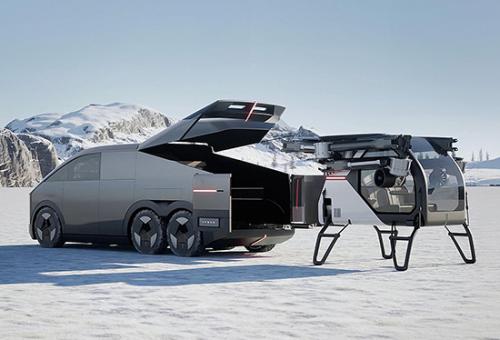根据此前消息,该车长约5.5m、宽2m、高2m。驱动系统采用3轴6轮底盘布局,支持6×6全轮驱动与后轮转向系统,承载与越野性能出众。新车搭载全球首款800V碳化硅增程动力平台,CLTC综合续航突破1000km。飞行部分为纯电驱动,可容纳两人,创新采用六轴六桨双涵道构型,桨叶和机臂皆可折叠,方便收纳与展开。