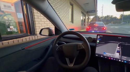 海外网友上传了不少热乎的视频,其中最惊艳的是特斯拉FSD陪一位网友完成了一次麦当劳点餐。
