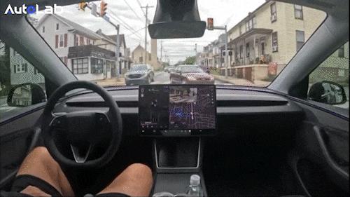 更能凸显出特斯拉FSD具备人类思维的场景,是它在路口进行的“倒车”。