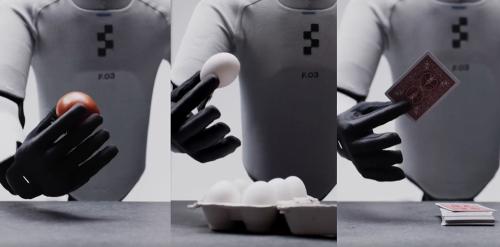 据悉,基于自研触觉传感器,Figure 03能感受到低至3克的微小压力,实现对薄、脆弱、不规则物体的稳定抓取。在演示视频中,Figure 03不仅成功抓取了西红柿、鸡蛋,还能精准抽出一沓扑克牌的最上面一张。