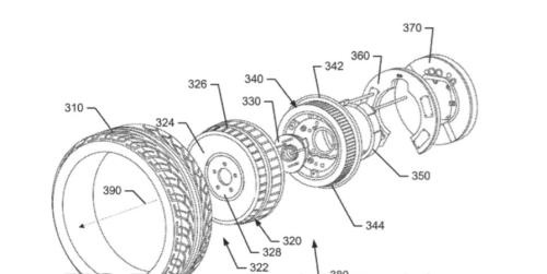 图片来源:USPTO早在2023年2月,福特就公布了一项电动汽车专利,该专利采用了实心轴和轮毂电机,这将形成一个电动车辆轴,利用一个车轮组件和一个驱动一个车轮的电机,同时配置另一个驱动另一个车轮的电机。目前,福特尚未推出具备此类功能的量产电动汽车,但现在,该公司公布了另一项可能具有类似功能的专利——组合式电机转子和轮辋组件。轮毂电机并非全新概念,但目前的装置通常使用安装在轮毂上的电机,然后依靠旋转的转子来转动车轮和轮胎。在这种情况下,电机的旋转运动将转化为车辆的运动,即轮胎与路面接触时的运动。专利图中显示了一种用于车辆的车轮组件,可以包括一个可安装轮胎的轮辋,以及一个可操作地连接到轮辋的电动机组件。电动机组件可以包括一个转子、一个定子和一个电力电子装置。电动机组件可以可操作地连接到车辆的电池,以向轮辋提供动力,从而使轮胎和轮辋一起旋转,同时轮辋响应于定子中施加的旋转电场而旋转,该旋转电场在电力电子装置的控制下引起转子的相应旋转。轮辋和转子一体成型为一个组合组件,两者之间无需任何紧固装置。