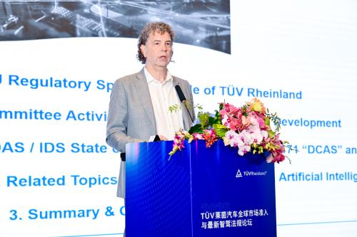 论坛上,TÜV莱茵中德专家围绕欧洲智能驾驶相关法规最新发展、UN-R171 DCAS法规要点及实践、欧盟智能驾驶数据合规解决方案、欧盟单车认证(IVA)、车辆出口热点国家最新市场准入要求和法规对比、整车型式认证UN法规功能安全要求等话题进行了分享;中汽智能科技(天津)有限公司智能驾驶合规测试室项目经理李德润则重点介绍了中国智能驾驶标准现状与发展,帮助车企制定策略,有效应对监管要求和市场挑战。
