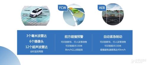 荣威iMAX8搭载3个毫米波雷达、6个摄像头、12个超声波雷达,可实现前方碰撞预警、自动紧急制动以及全时周围监控。