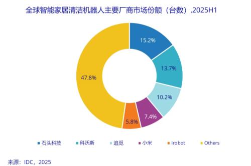 在智能家居清洁机器人市场——涵盖扫地机器人、泳池机器人、割草机器人、擦窗机器人及空气净化机器人五大品类,根据IDC的统计数据,2025年上半年全球市场累计出货量达1,535.2万台,同比增长33%。