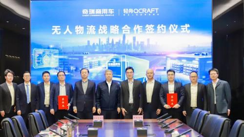 日前,轻舟智航与奇瑞商用车达成无人物流战略合作,双方将携手打造全新的量产级L4物流产品,整合各自在自动驾驶技术、整车量产制造及全球市场资源等领域的优势,推动无人物流车在城市配送全场景的规模化应用。
