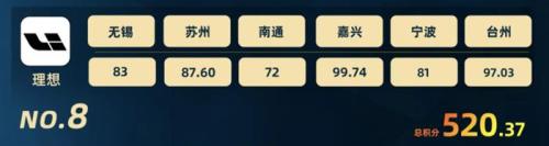 理想排名保持第8名不变,积分较9月微增1.38分。宁波站(81分)、台州站(97.03分)的成绩有效对冲了剔除南京站(94.65分)、常州站(82分)后的积分影响,整体表现稳健。
