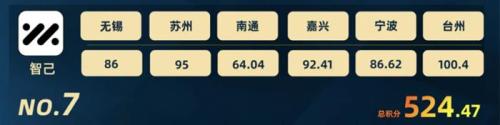 华系品牌中排名第二,总排名从9月第7名升至第4名,积分仅下滑2.62分。虽南通站、嘉兴站、宁波站表现不佳(嘉兴站75.05分最低),但台州站华系预赛取得102.25分的优异成绩,成功稳住积分并超越智界。