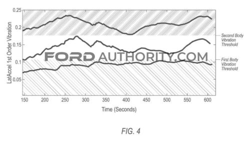 图片来源:USPTO福特公司已通过多项专利申请,探索未来车辆如何为用户提供更详细、更及时的轮胎信息。这些专利申请包括不均匀轮胎磨损识别技术和轮胎轮换系统等。如今,福特又公布了一项新专利,展示了一种车轮不平衡检测系统,该系统未来也可能应用于福特车型。这套系统旨在实现其名称所指的功能——检测车辆车轮是否平衡,并在出现这种情况时提醒驾驶员。它将通过传感器收集车辆车轮速度和车身振动等数据,并将其与各种阈值进行比较,以确定其是否在可接受的范围内。