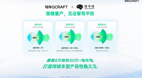 轻舟智航已形成覆盖8万至30万元以上车型的“轻舟乘风”产品矩阵,包括乘风AIR(高速NOA)、乘风PRO(城市NOA标准版)和乘风MAX(城市NOA进阶版),致力于打造“同级车型性能之王”。目前,轻舟智航辅助驾驶搭载量即将突破百万大关,合作量产车型超20款,与近十家车企达成深度合作,规模化交付能力持续领先。