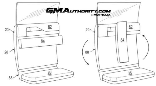 图片来源:USPTO在通用汽车的专利申请中,该可重构车辆门板系统包括正常状态和收起状态。收起时,该系统外观与标准内门板无异;展开时,门板可从车门向外移动,并可用作座椅、工作台或桌子等多种功能。该系统由安装在车门内侧并通过连杆与车门连接的面板组成。该连杆使面板能够从车门内的收纳位置移动到远离车门的展开位置。连杆可以包括铰链、滑轨、轨道或这些部件的组合,使面板能够旋转、垂直滑动以及靠近或远离车门。展开后,面板可以相对于车门位于不同的高度。该面板还可以有两面,每一面都具有不同的功能。一面可以由适合用作工作台面、桌子或平台的硬质材料制成,而另一面可以由更柔软或更具延展性的装饰材料制成,例如织物或皮革,适合用作座椅。在某些配置中,面板可以翻转,使任一面朝上,具体取决于预期用途。