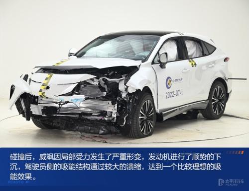 近日,C-NCAP公布了广汽丰田威飒(询底价|查参配)的碰撞成绩,该车以综合得分83.1%获得了5星安全评价,也成为了新规下首款获得5星评价的豪华SUV车型。测试的具体车型为2022款广汽丰田威飒2.0L CVT四驱至尊型,官方指导价为26.88万元。下面我们就来看看威飒在不同测试项目中的具体表现吧!