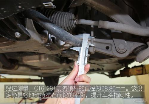 在副车架的设计上,CT6采用了粗壮的全框式铝合金副车架,在引擎舱内四根加强顶吧的配合下,很好地保证了车头的整体刚性,相比单薄的钢制冲压副车架来说更贴合车辆运动性的定位;同时,较粗的防倾杆配合MRC电控磁流变减震器,令车头的姿态更为优雅、可控,能给予驾驶员更强的劈弯信心。