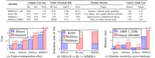 这项创新的核心是一种名为APMOEA(Adaptive Predictive Multi-Objective Evolutionary Algorithm,自适应预测多目标进化算法)的预测算法。该算法以100-200毫秒的极快周期运行,能够预测车辆移动性和无线信道的短期变化。这使得系统能够实时选择最合适的后量子密码(PQC)方案——无论是基于格、码还是哈希函数。