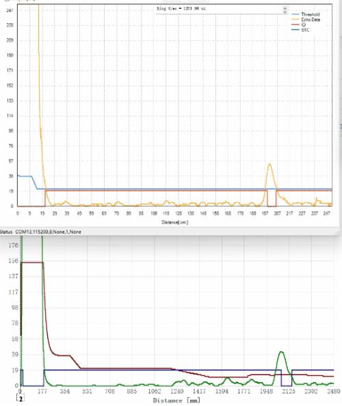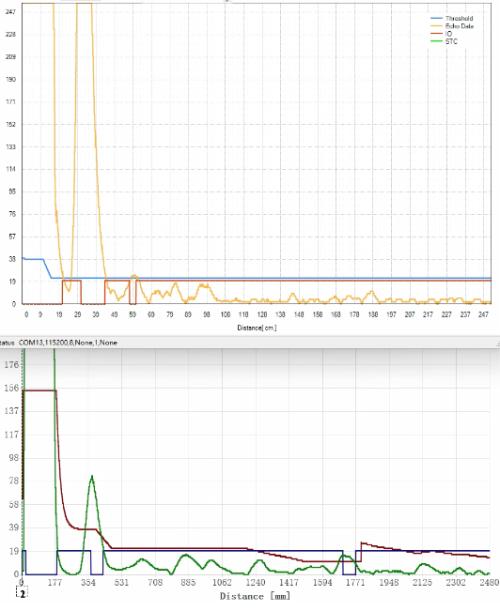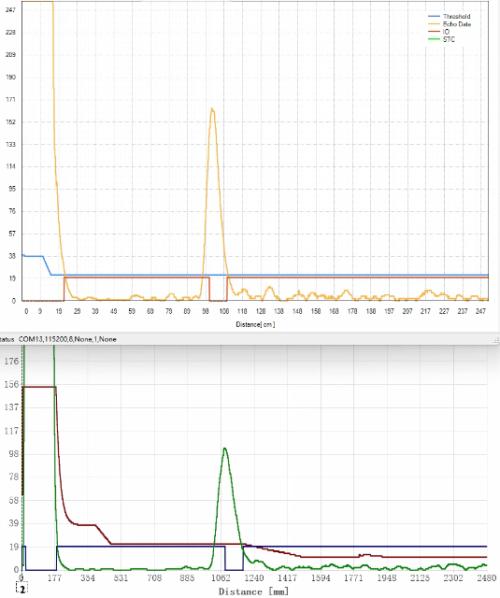 iND24003(橙色回波)和国外芯片(绿色回波)对比测试