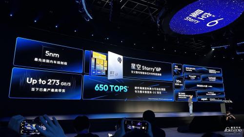 星空Starry 6P作为中国首款舱驾融合整车智能体芯片,它以5nm制程、650TOPS算力和273GB/s带宽,可同时支持6 - 12屏信息显示,满足车载娱乐和多媒体显示的渲染需求。