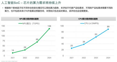 事实上,从2021年到2024年,仅仅在感知层面上,NPU算力的需求就会每年增加一倍,而CPU算力需求将会翻6倍。