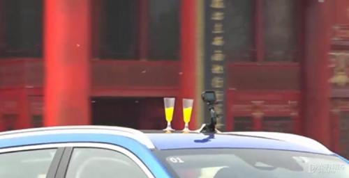 通过车顶GoPro实时捕捉的视频可以看到,水杯里的果汁并没有出现明显的晃动,当最终测试完成时,水杯依然处于原来的位置。