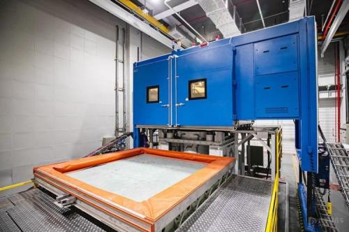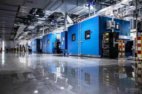 通用对其进行了非常多的严苛测试,在满足国家法规和C-NCAP等要求的基础上,增加底部球击工况、过铁轨工况等复杂工况场景的测试。下图的Ultium高压电池包正在台架上接受振动测试。